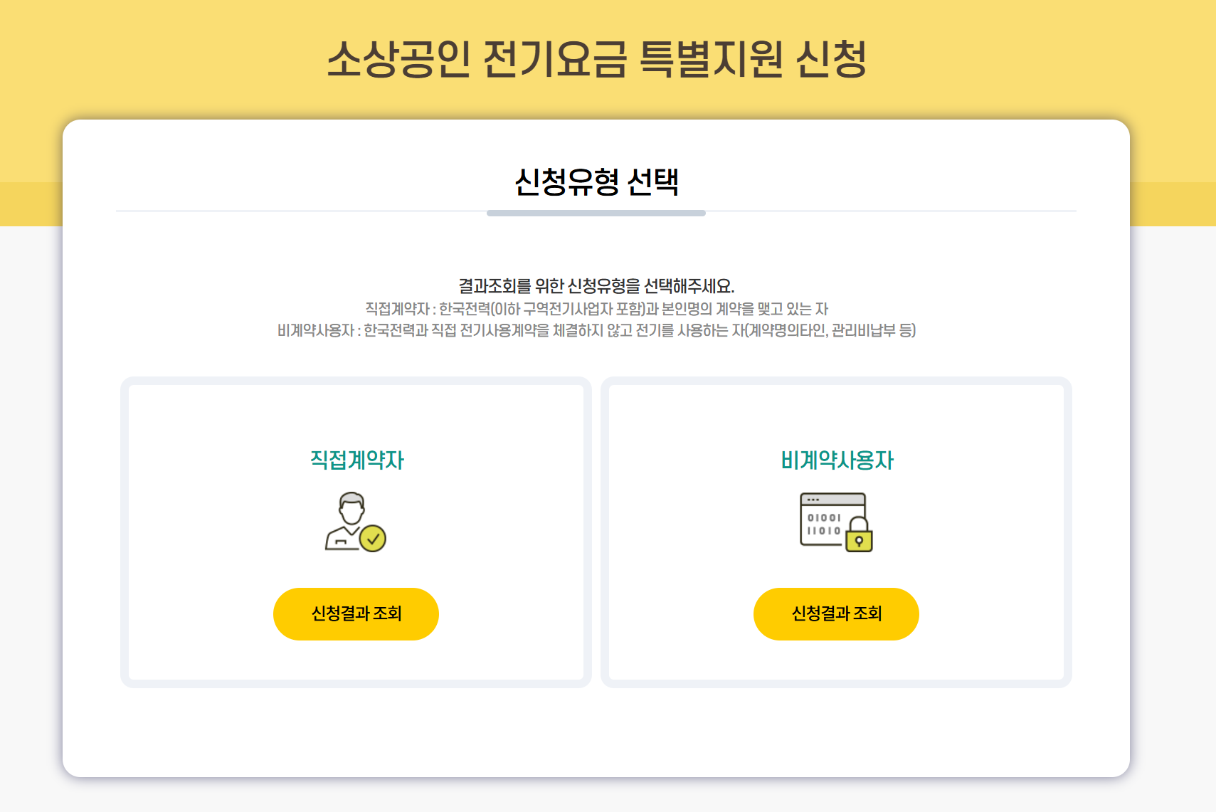 2. 계약 유형 체크 후 소상공인 전기요금 신청: 본인의 계약 유형에 따라 소상공인 전기요금 지원 신청 절차를 진행합니다.