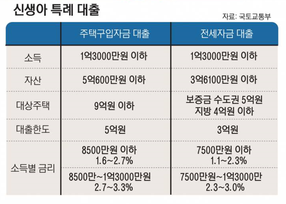 마지막 세 번쨰는 바로 신생아 특례대출이다. 신생아 특례대출은 주택구입용 자금과 전세자금으로 나뉘는데 신생아 출산 가구에 대해 매우 저리로 대출을 지원해주는 상품이다.