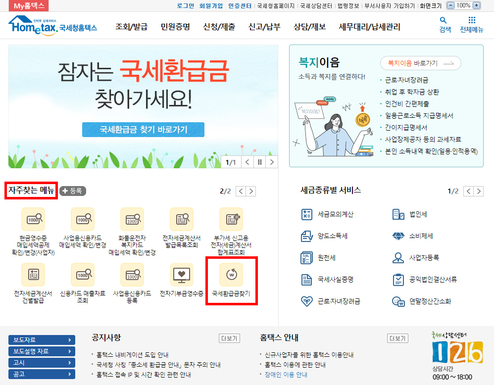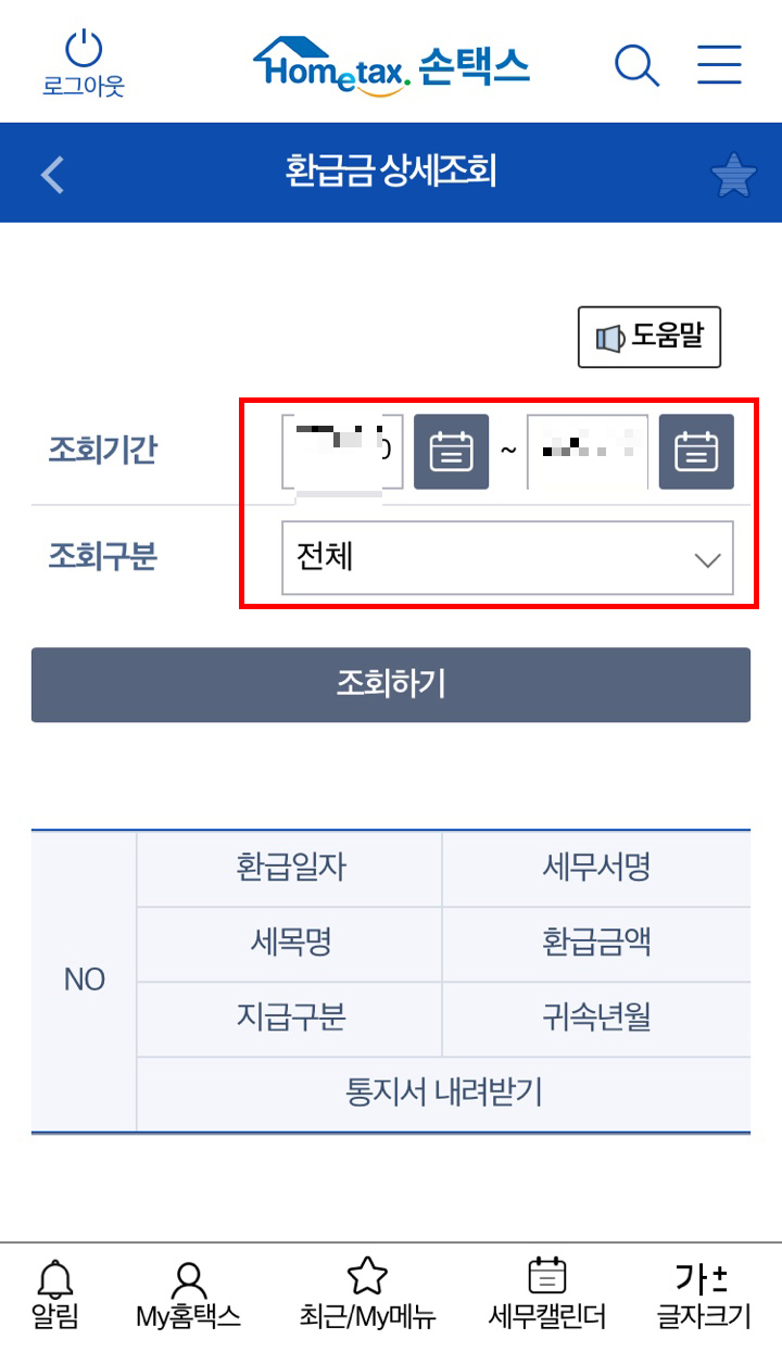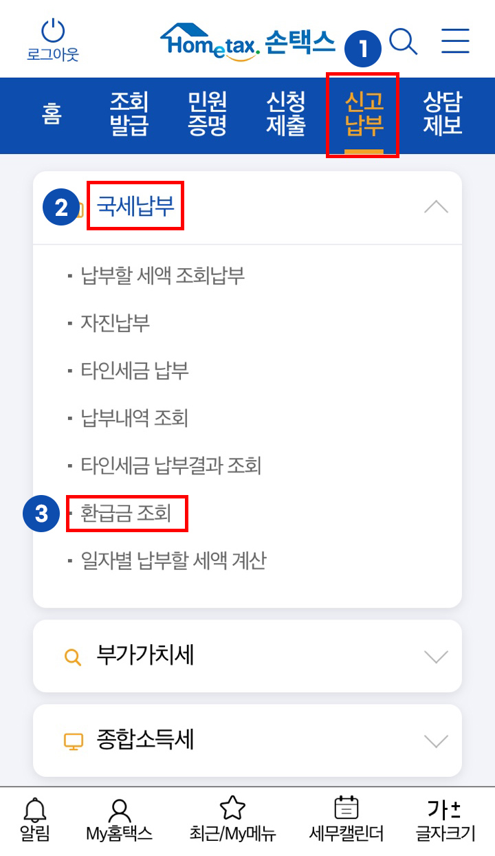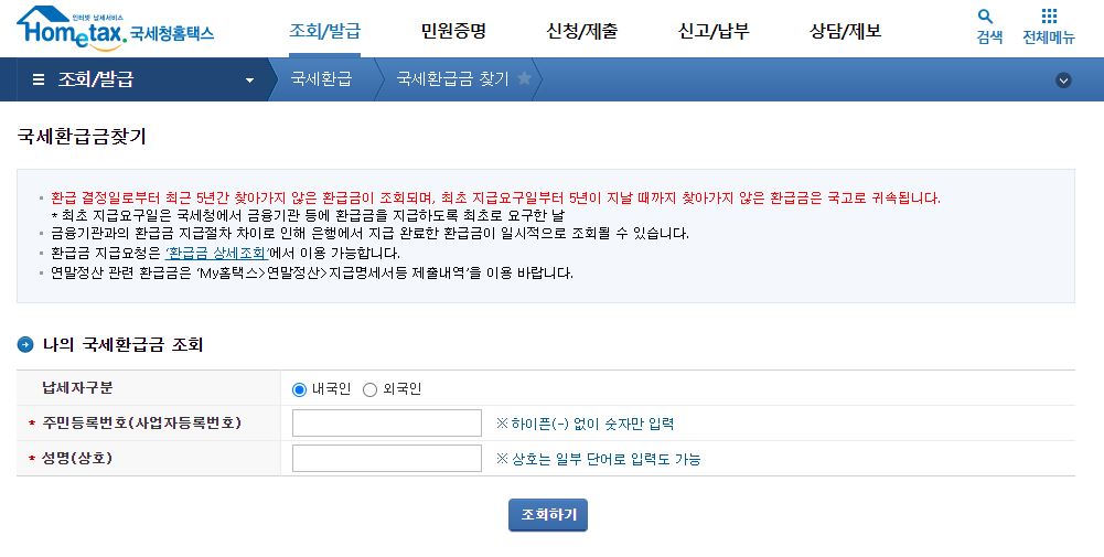 홈택스 종합소득세 환급금 조회