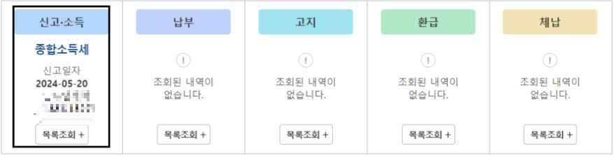 환급금 조회: 종합소득세 환급금 조회 메뉴에서 환급금 내역을 확인합니다.