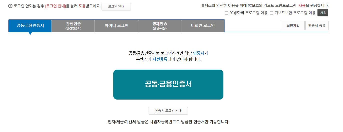 홈택스 접속: 국세청 홈택스에 접속합니다.