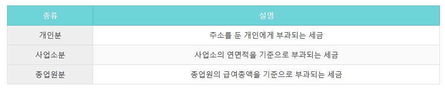주민세는 개인분, 사업소분, 종업원분으로 나뉩니다.