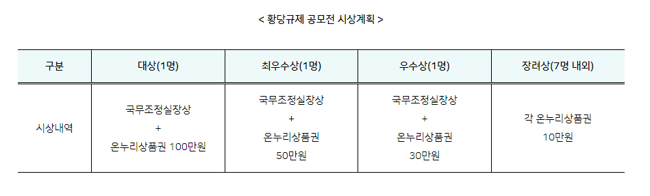 황당 규제 공모정 시상계획