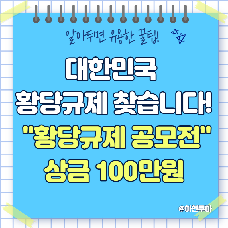 오는 3월 21일부터 4월 20일까지 한 달간, 황당 규제 공모전 홈페이지(www.황당규제.com)를 통해 진행된다.