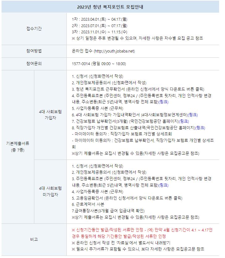 2023년 1차 경기도 청년 복지포인트 대상자 모집공고