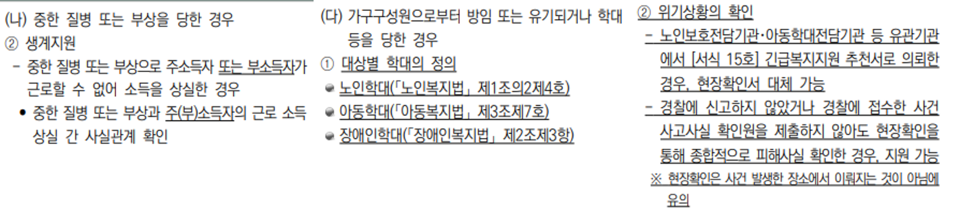 먼저 간단하게 살펴보면 위기사유 발생으로 생계유지가 곤란한 저소득층을 대상으로 하는 지원제도인데요.