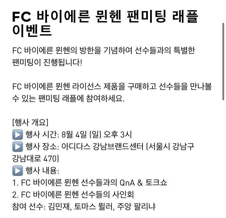 FC 바이에른 뮌헨 팬미팅에 꼭 당첨되시길 바라며,